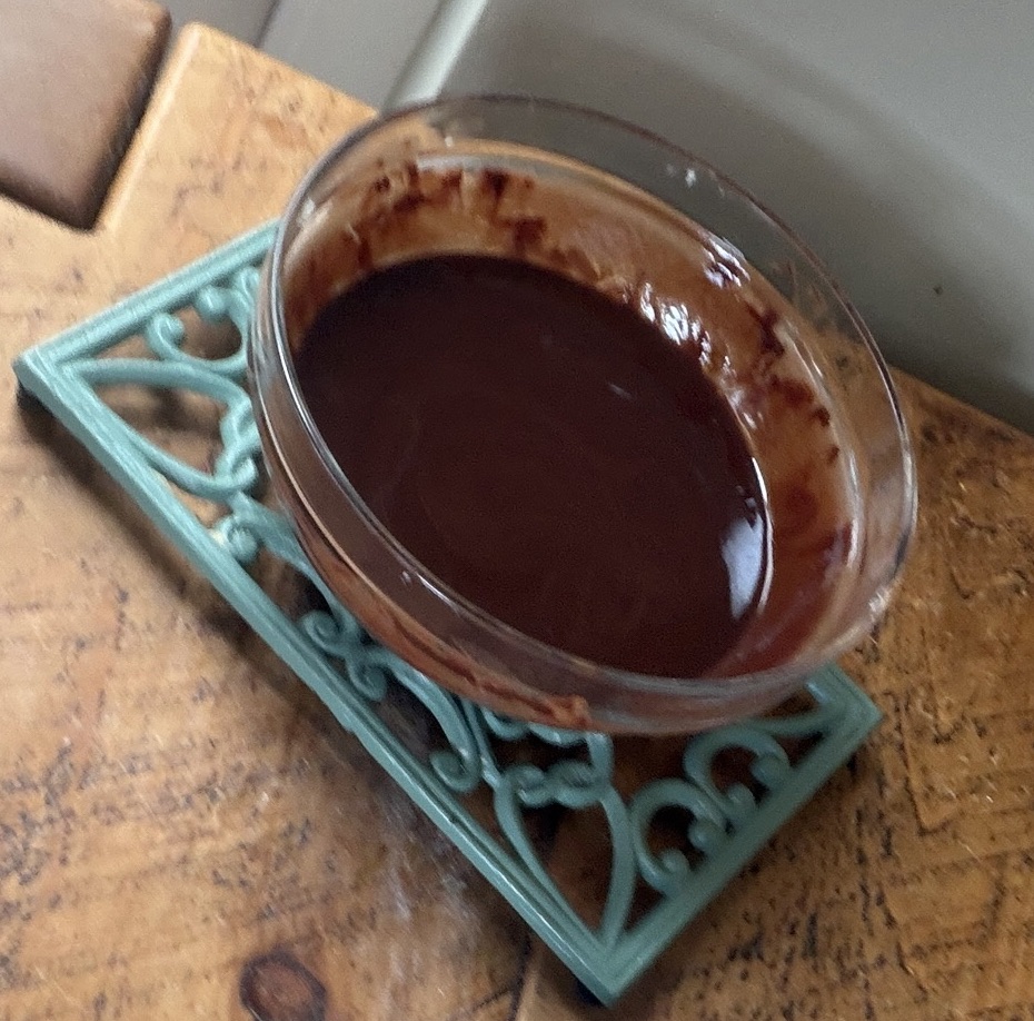Gently melt it over a pan of simmering water, or microwave in short bursts, stirring in between, until it’s smooth and glossy.