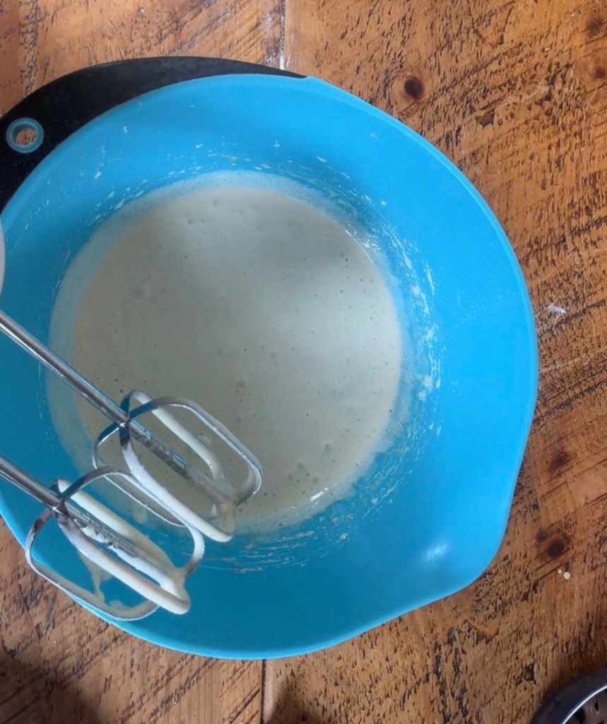 Keep going for a few minutes until the mixture turns pale, thick and mousse‑like, and almost doubles in volume. This step gives you that lovely shiny top and a gorgeous texture, so it’s worth the extra minute or two.