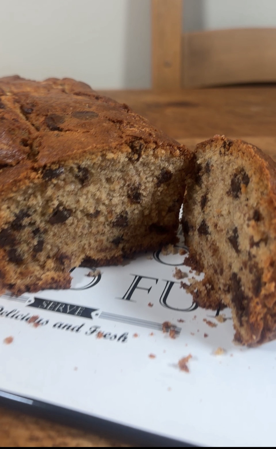 • The absolute best moment is slicing it while it’s still a touch warm, when the chocolate chips are soft and a bit melty and the crumb is tender and moist.
