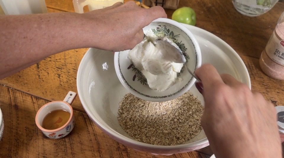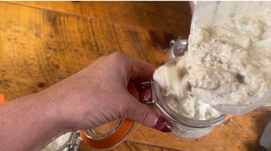 In the morning, give your oats a quick stir and portion them out. Slice the second apple for extra crunch, swirl through the remaining peanut butter, and add your favourite toppings—berries, pumpkin seeds, and coconut flakes are my go-tos.