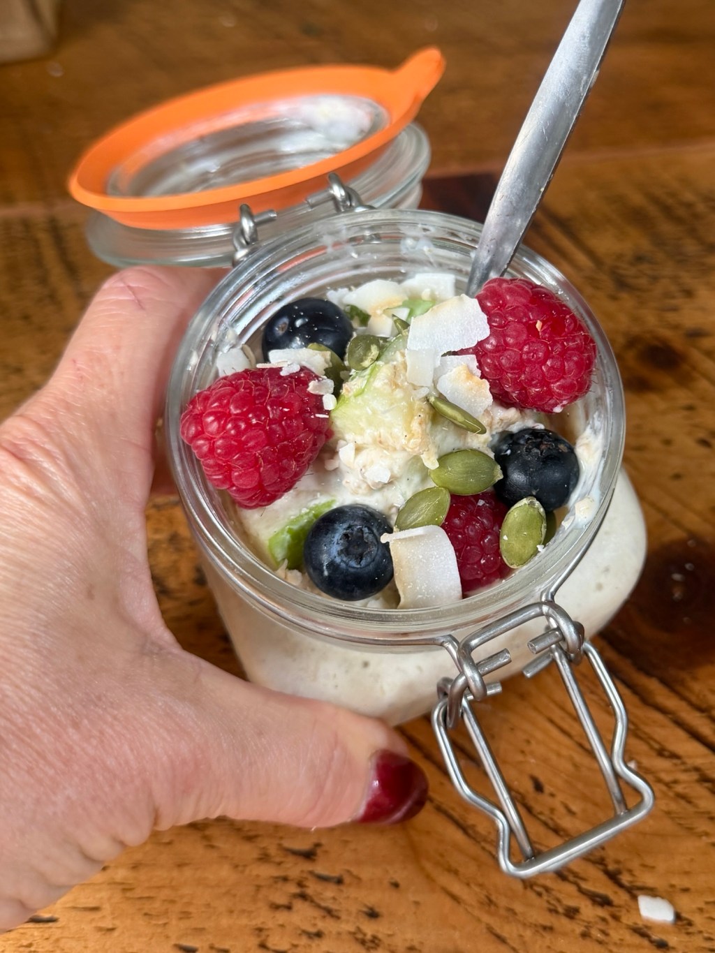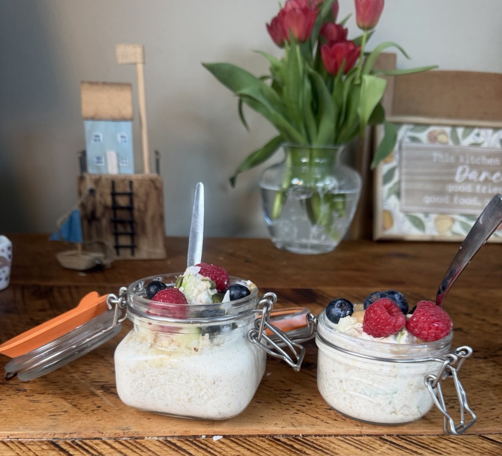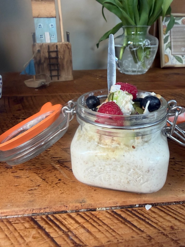 Think of these oats as your morning power-up. Each serving packs 20g of protein, 8g of fibre, and a healthy dose of good fats. You get long-lasting energy, stable blood sugar levels, and a happy gut—all while eating something that feels like dessert! They’re great cold straight from the fridge, or warm them gently if you fancy something cozier. I like making a few jars on Sunday night so breakfast is completely sorted for the week—zero effort, maximum yum.