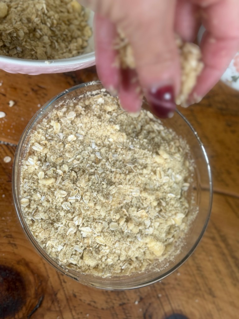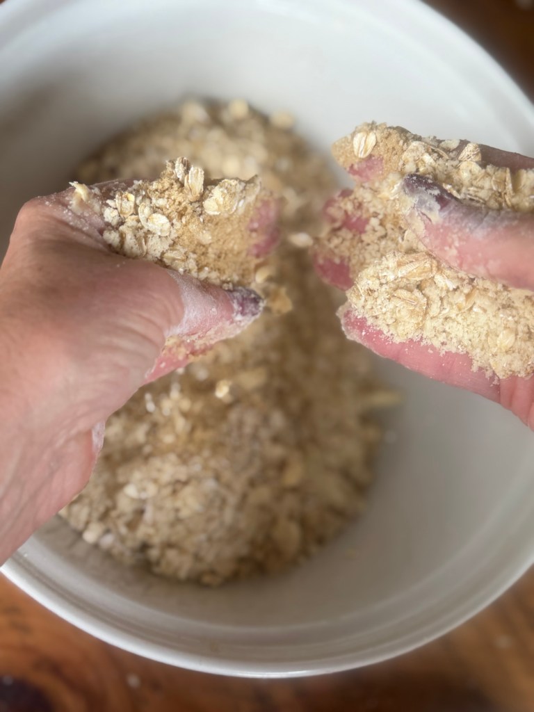 Whatever version you go for, the rule is the same: don’t rub it too fine. You want some bigger clumps in there so the top bakes up crunchy and interesting, not sandy and flat.