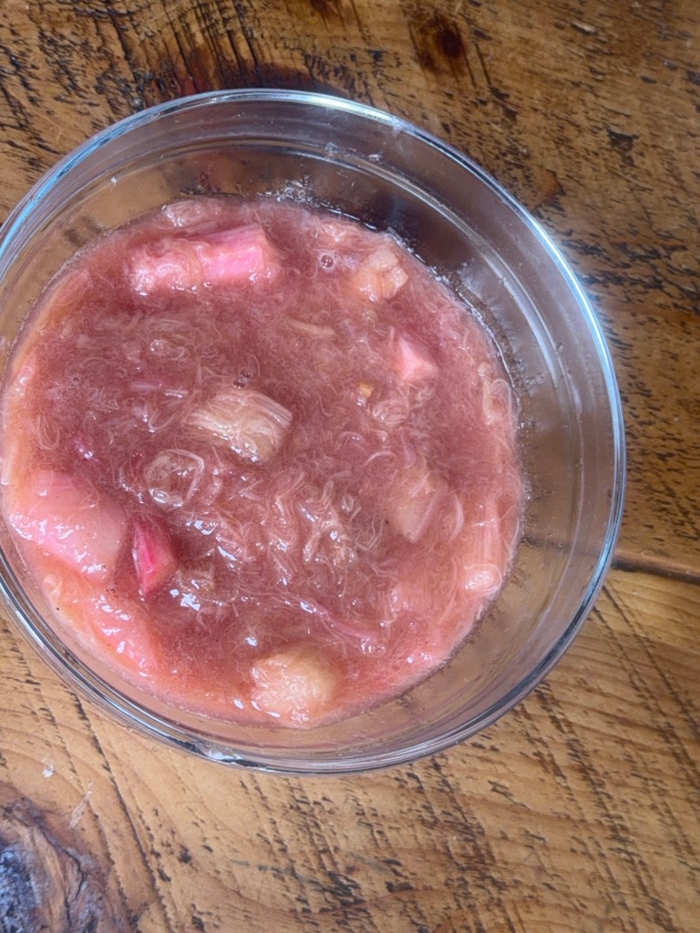 You can also mix and match – rhubarb and apple, rhubarb and raspberry, whatever needs using up in the fruit bowl or freezer.