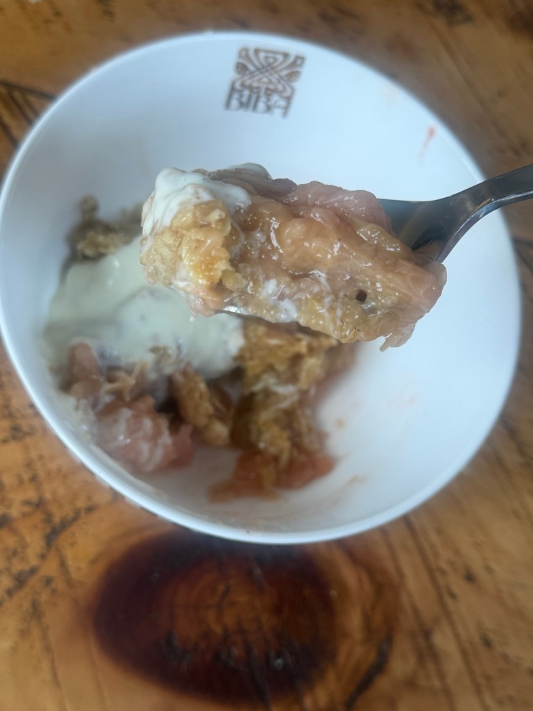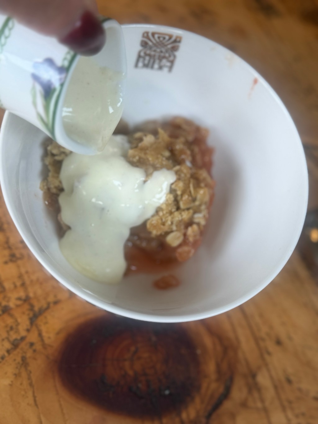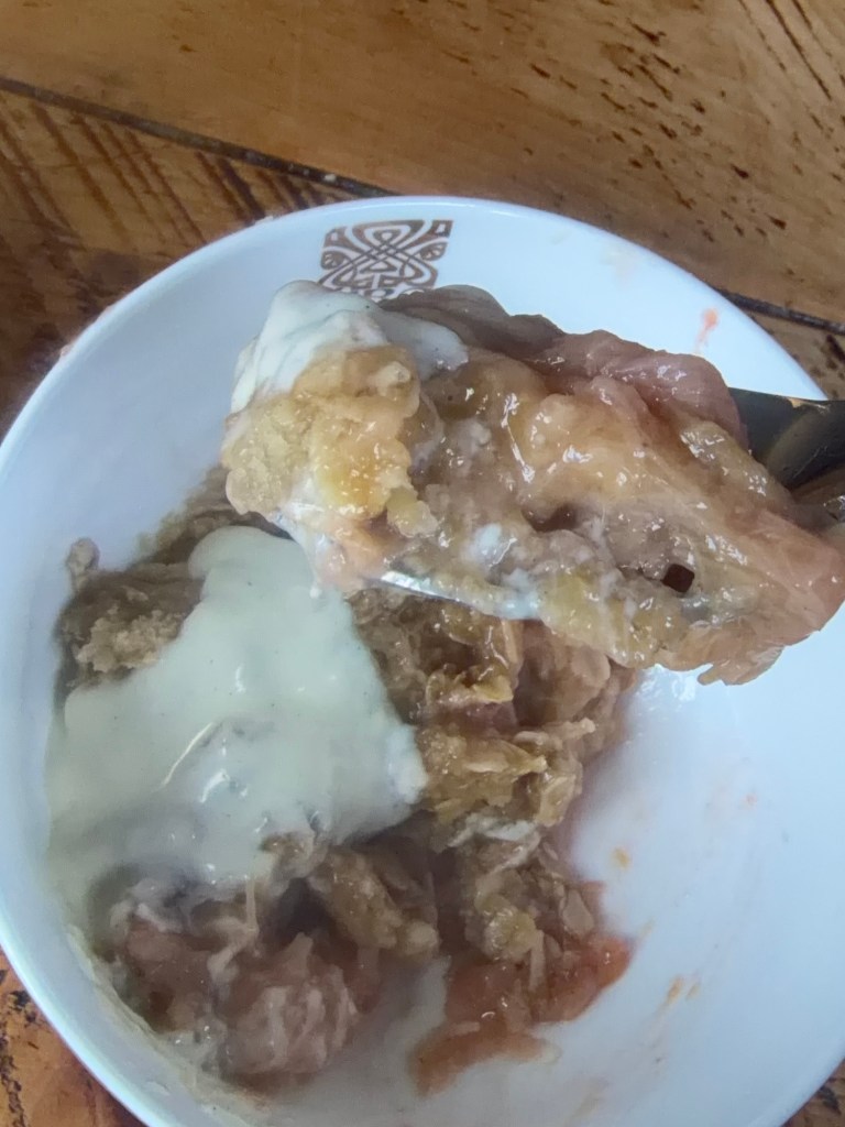Serve it with proper custard, vanilla ice cream, pouring cream or even Greek yoghurt if you’re pretending to be sensible. Leftover crumble, cold from the fridge, is a totally legitimate breakfast in my book, 😂😂😂!