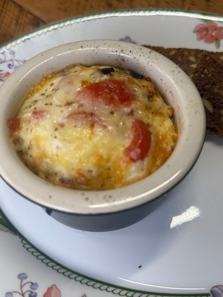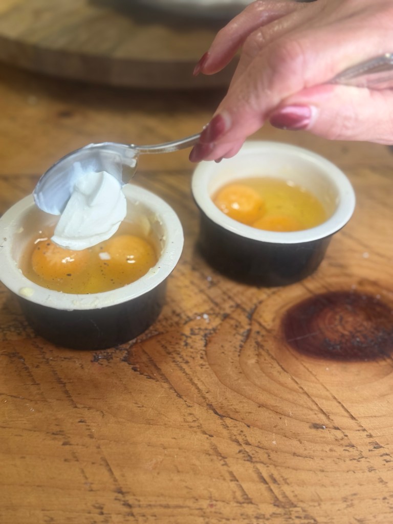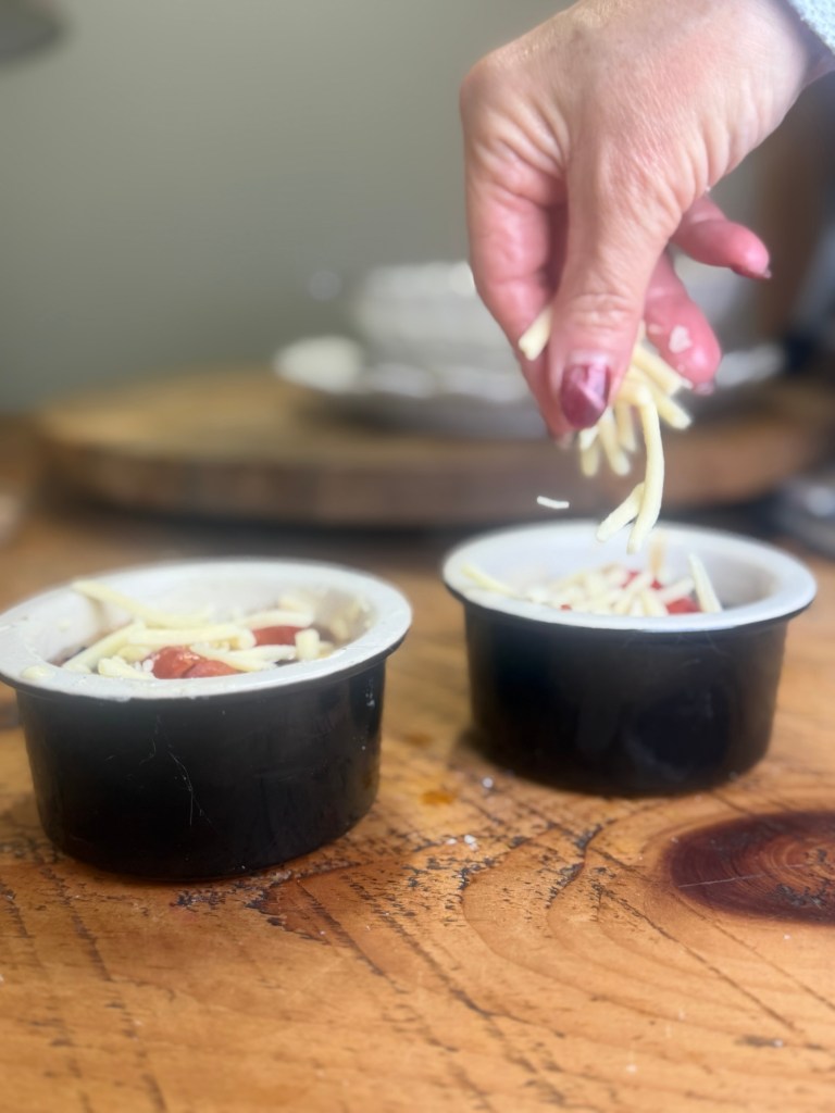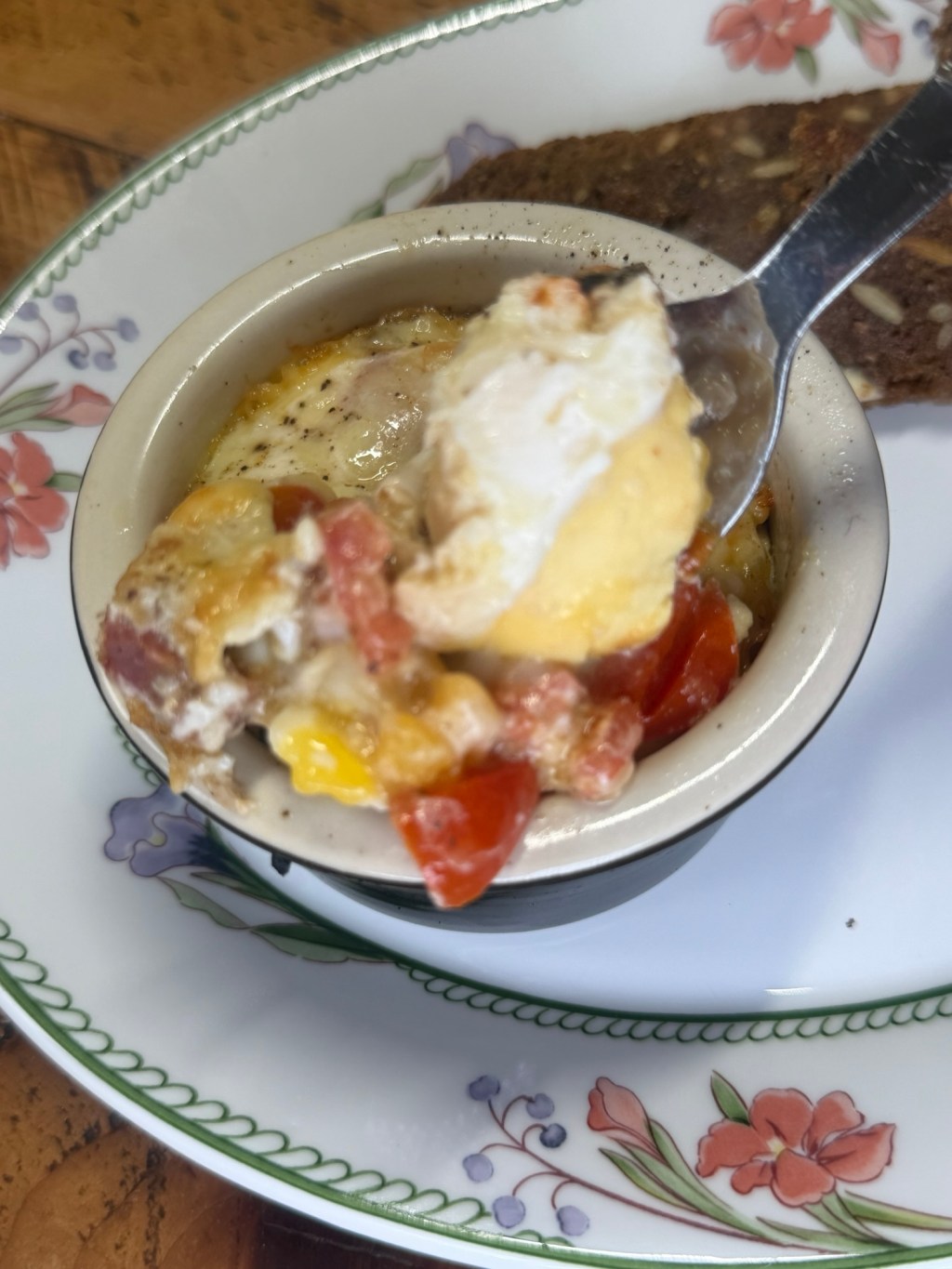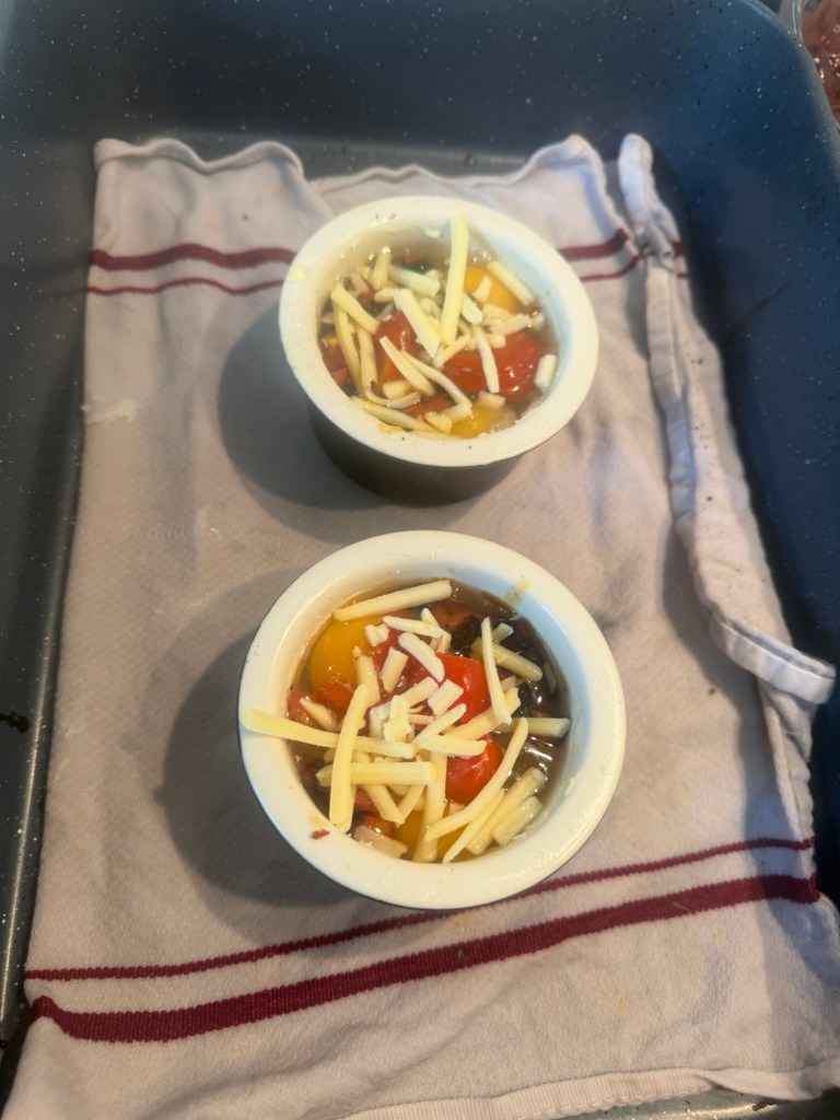 • Everything is built directly in the ramekin – egg first, goodies on top.