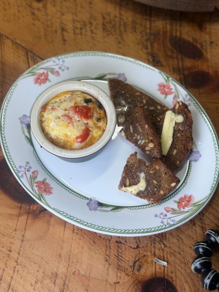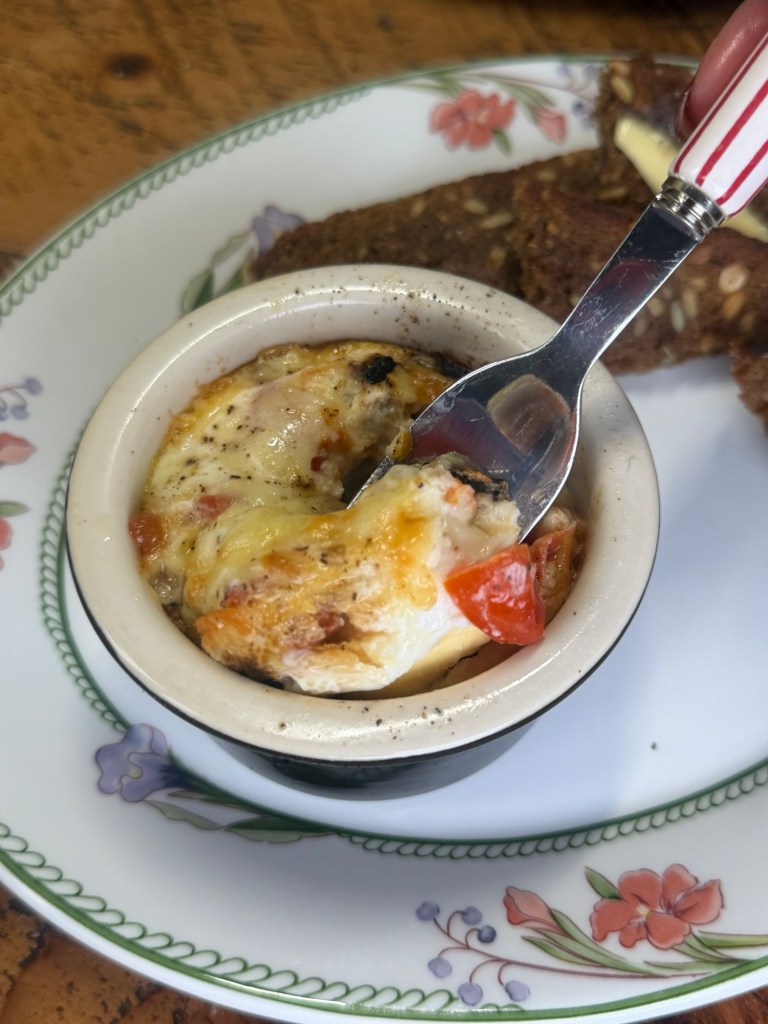 You still get that soft, just‑set egg from baking the ramekins in a water bath, but with way more flavour and texture going on.