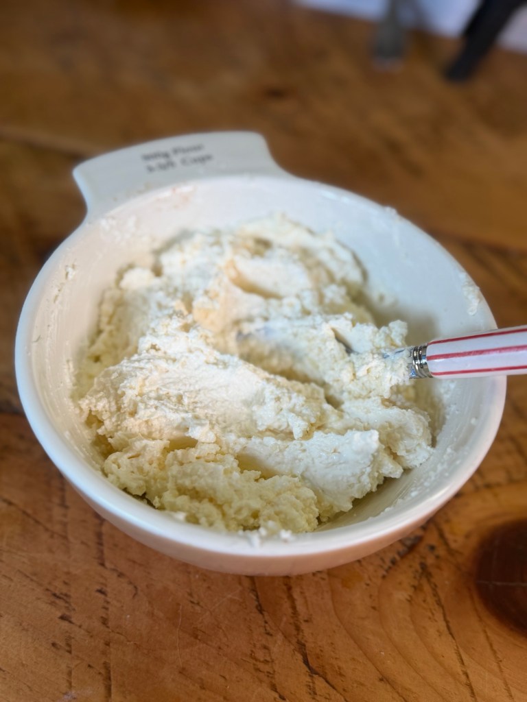 In a small bowl, stir together the crème fraîche and most of the grated cheese, keeping a little cheese back for sprinkling on top. Add a good grind of black pepper. You don’t need to overthink this – just mix until it’s smooth and combined.