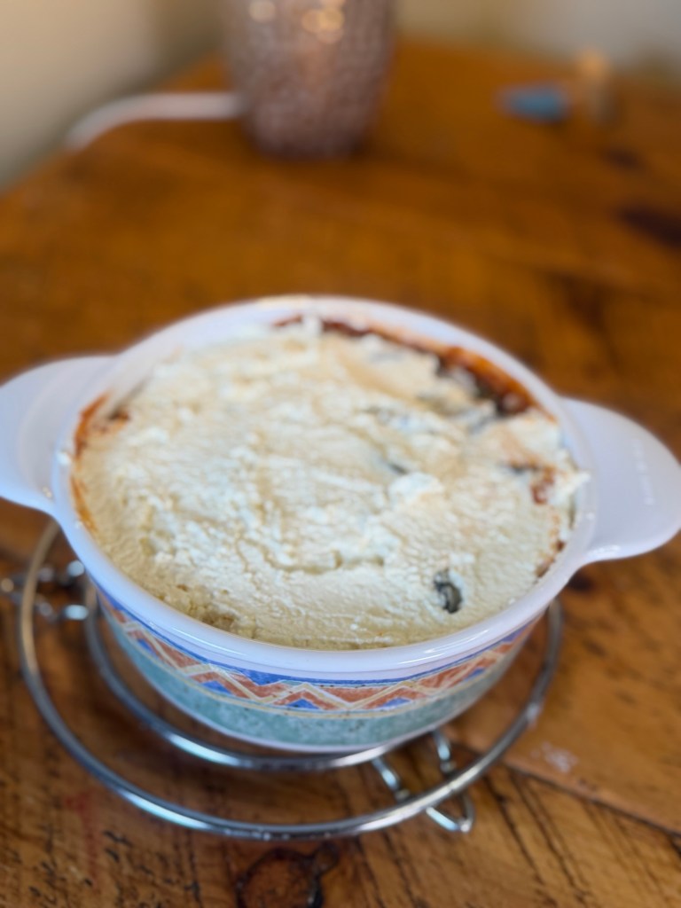 Once it looks lovely and golden, take it out and let it sit for 5–10 minutes. This resting time helps it firm up so it’s easier to scoop or slice.