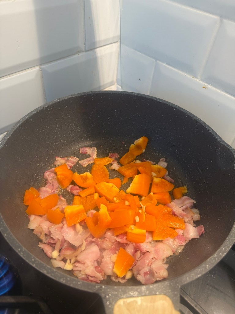 You know the vibe – a few rashers of bacon, half a tub of mascarpone from that “I’ll definitely make a dessert” phase, a soft goat’s cheese you bought because it looked fancy, and one pepper slowly giving you side‑eye from the veg drawer.
