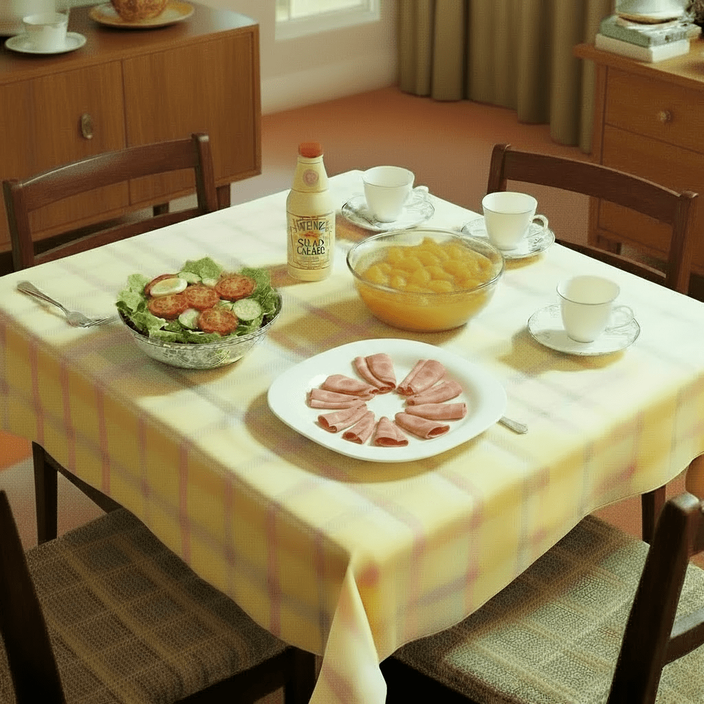 Take Sunday evenings, for example. We didn’t have fancy meals or anything you’d see on Instagram now. It was salad, tinned ham, tinned mandarin oranges, and a good dollop of Wonder Whip. And if we were lucky, that frozen cream dessert that felt like the height of luxury in the 70s. Tea was always of the leaf variety- tea bags wouldn’t do .. and always served in a china cup and saucer.