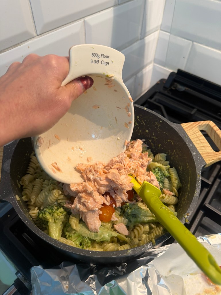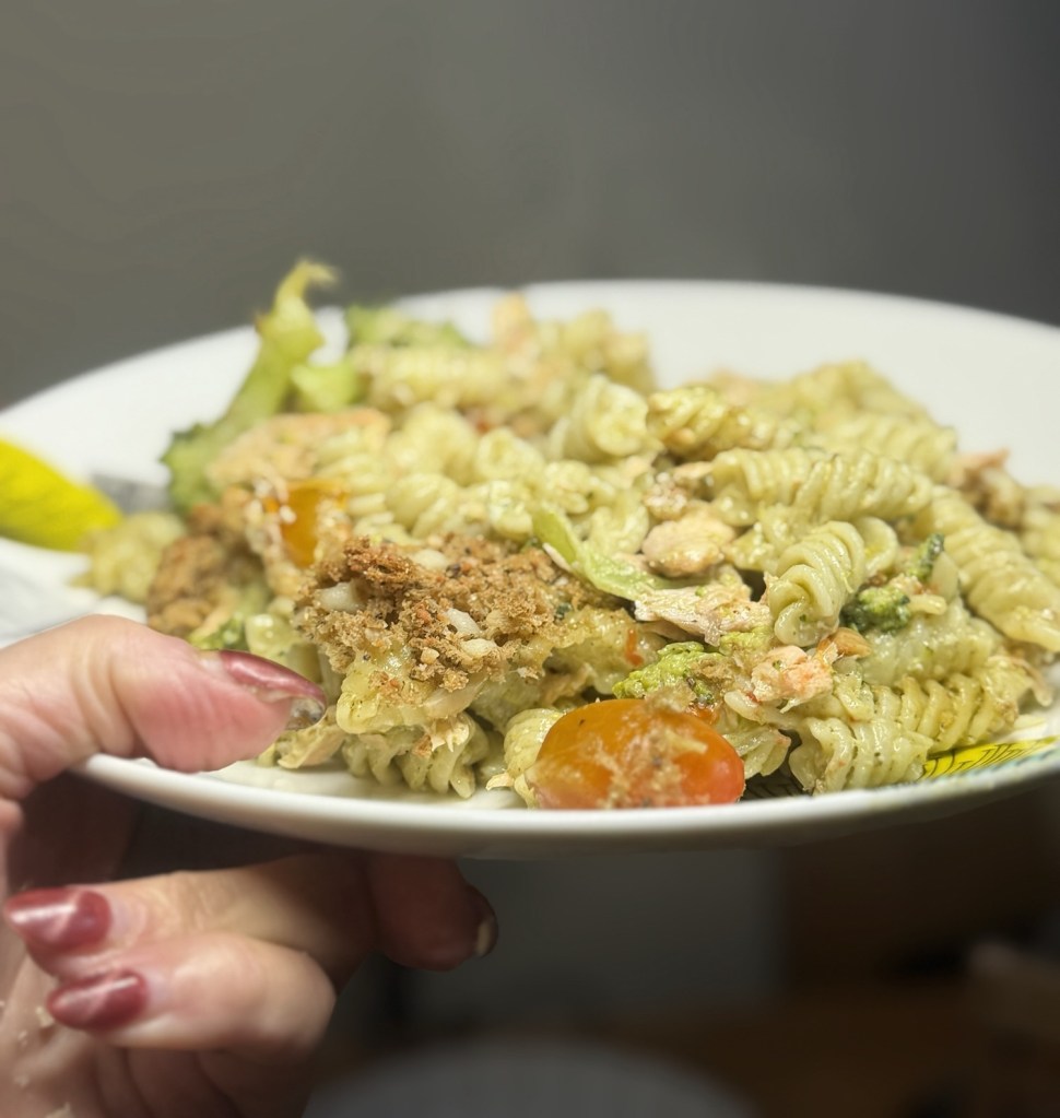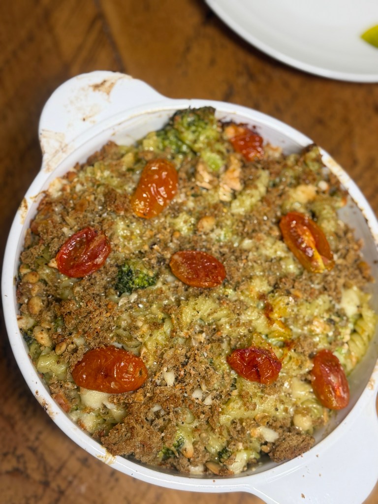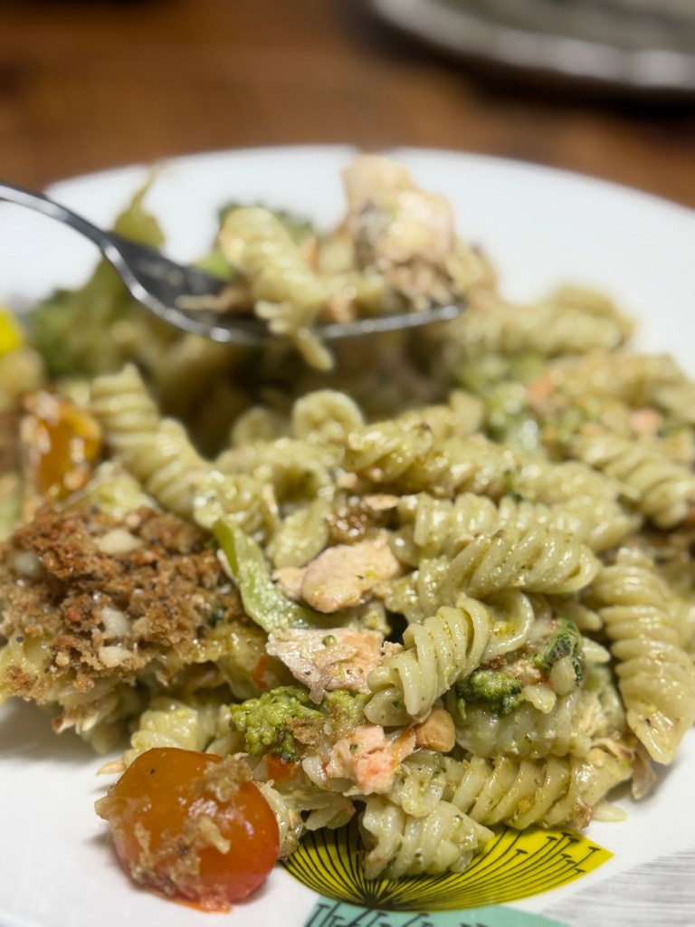 This pesto salmon pasta bake has quickly become a favourite in our house. You’ve got flaky salmon, sweet roasted tomatoes, and a rich, creamy pesto sauce all wrapped up with pasta and topped with that golden, crispy finish. It’s the kind of meal that disappears quickly and gets requested again the next week.
